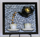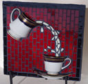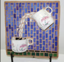 When I saw these tiny cups and saucers, I knew I had to use them in a mosaic. You can almost smell the aroma of coffee in the steam rising from the cups.
