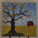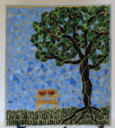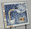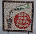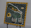 This is the first mosaic I ever made incorporating three dimensional elements. The cup and creamer are from the set of dishes we received for our wedding. When it was time to replace them, I couldn’t quite let go, so I decided to use them in a piece of art.