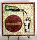 I found this bottle of Cheesehead Wine on display at our local liquor store one day. There it sat on the counter, proudly wearing its cheesehead hat. I didn’t even care what the wine tasted like, I knew I had to make a mosaic out of it.