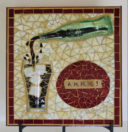 I enjoy incorporating Scrabble letter tiles in my mosaics and I love puns. On this piece, I’ve combined the two, to create a teapot pouring ‘tea.’