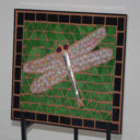 In this mosaic, an artist’s mannequin has become the artist. He has his paint brush and palette in hand as he creates beautiful paintings. The painting the mannequin is working on is not attached to the easel and can be replaced.