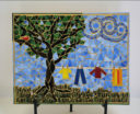 The inspiration for this piece came to me while having an MRI for my shoulder I injured while creating my mosaics. We had recently gone to a tasting at the Minhas Distillery in Monroe. (Love those Groupon coupons). I had my first taste of moonshine there and loved their Apple Pie flavor. Thinking about the moonshine, I knew I had to make a still. As soon as I was out of the MRI, I asked for paper and a pen so I could sketch the design.