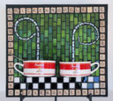I admit I love puns. I just had to include a little bit of a pun with the Scrabble tea in this mosaic.