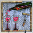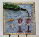The red mirror glass used in this piece evokes a beautiful red wine. The surface of the glass is slightly rippled, so it picks up and reflects light from many angles. Even the ‘wine’ in the wine bottle has a beautiful shimmer that shows through.