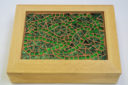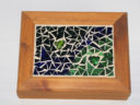 If you look closely, you’ll see a subtle pattern of leaves on this box.  The leaves are made from green Van Gogh glass with green mirror glass used for their centers and edges.  The Van Gogh glass used has a beautiful depth and looks like it is textured, adding a richness to the design.