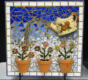 Take a look inside the pots, where you will find ‘soil’ to nourish the plants.  The flowers painted on the pots complement the millefiori flowers.  Millefiori means 1000 flowers.  It’s important to make sure your thirsty flowers are well watered.