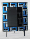 This frame has blue Van Gogh glass, black Van Gogh glass and silver mirror glass in a basket weave pattern.